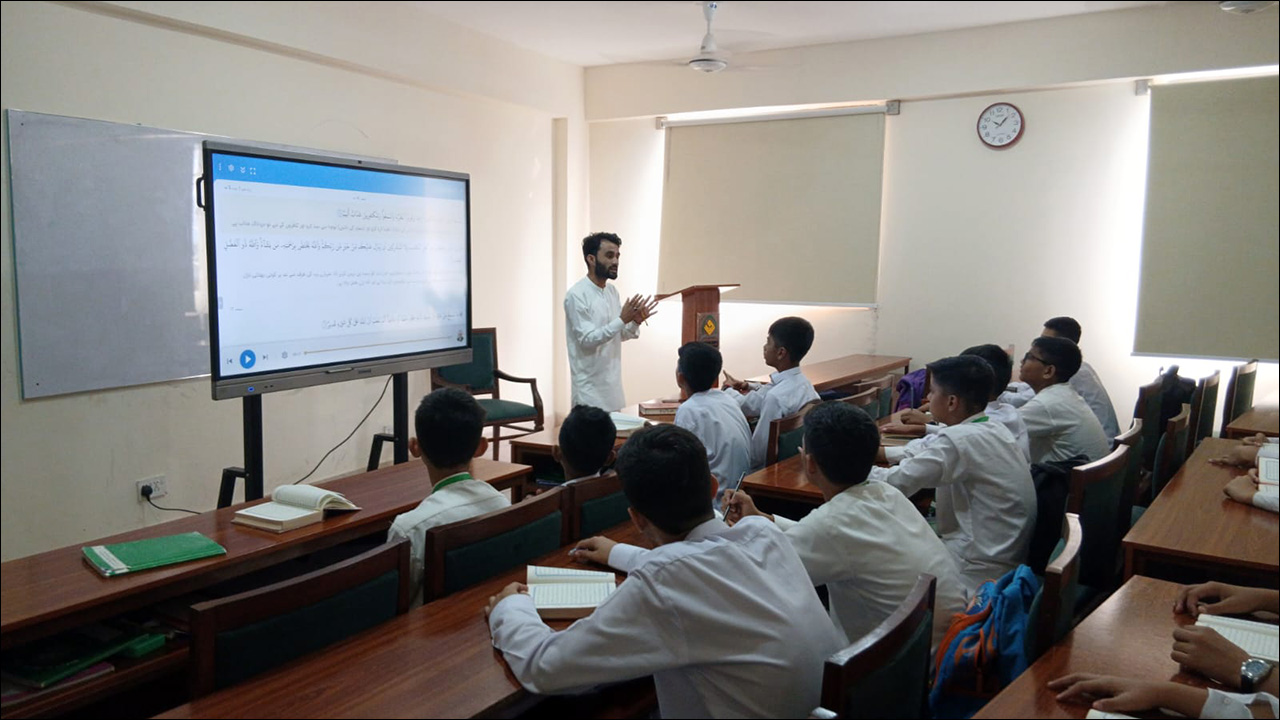 Hifz-ul-Quran classes, which include memorization, Tajweed, translation, Qira’at, and Tarteel, commence in the morning session after the morning assembly, from 8:00 a.m. to 11:30 a.m. An internationally recognized Hifz curriculum is followed.